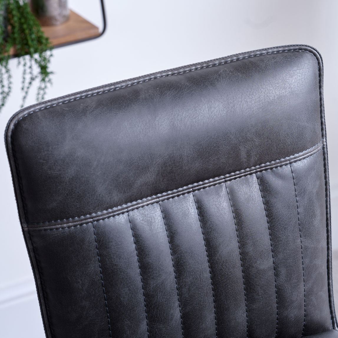 Sit up high with the Cooper bar stool, its faux tan leather upholstered seat makes a modern addition thats perfect for positioning at a breakfast bar.