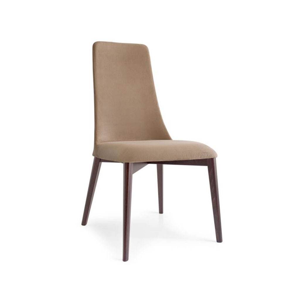 A striking chair with curved back detail and elegant wood legs, the Calligaris Etoile dining chair is available upholstered in a choice of colours.