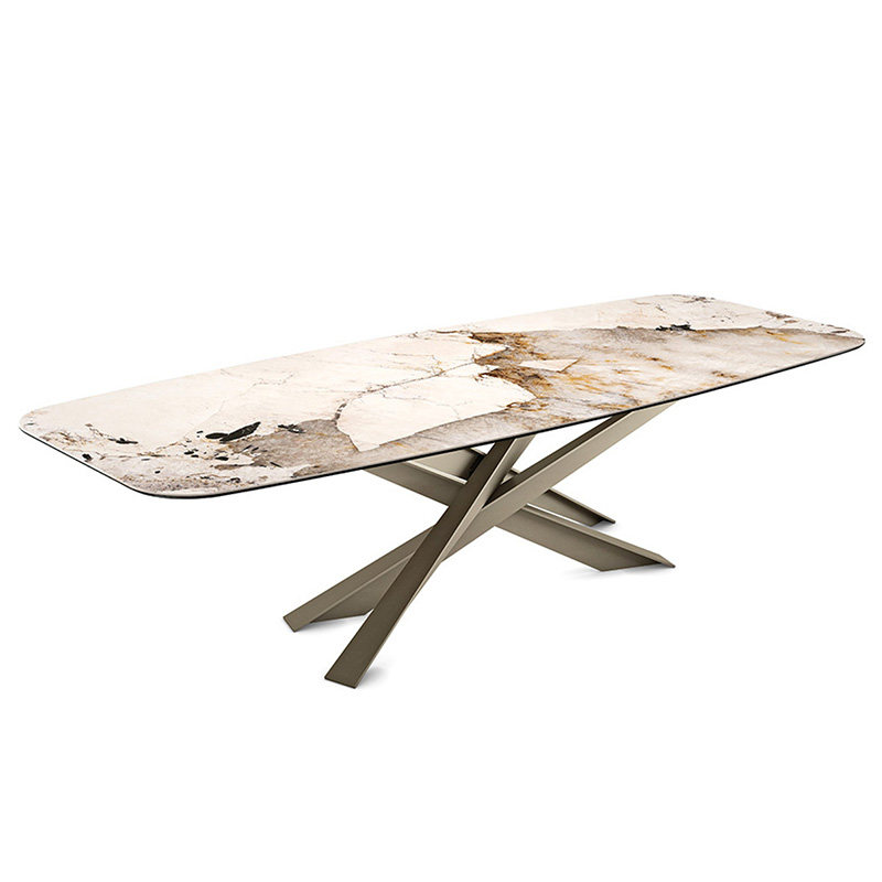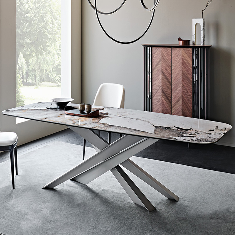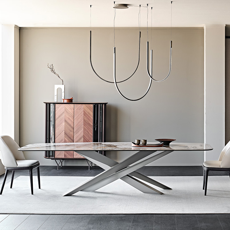 What makes Lancer a unique and precious model is the base with a strong architectural value, enlivened by a punchy graphic sign. Four blades cut through the air and intersect each other, creating an energetic composition with an apparently irreproducible pattern. Each leg is designed with a T-section, which multiplies the opportunities for crossing and overlapping.