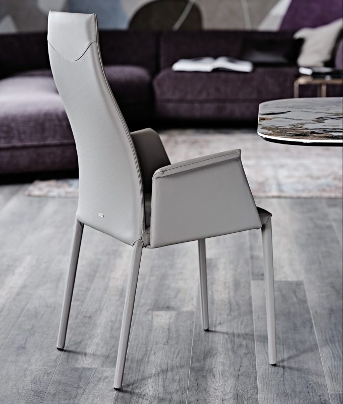 The Norma Chair is available with or without arms, cotter back and metal legs on either version also and boasts a wide range of base and upper options. Perfect in form and boasting a comfortable seat and back rest, this chair is designed and crafted in Italy using the finest materials available.