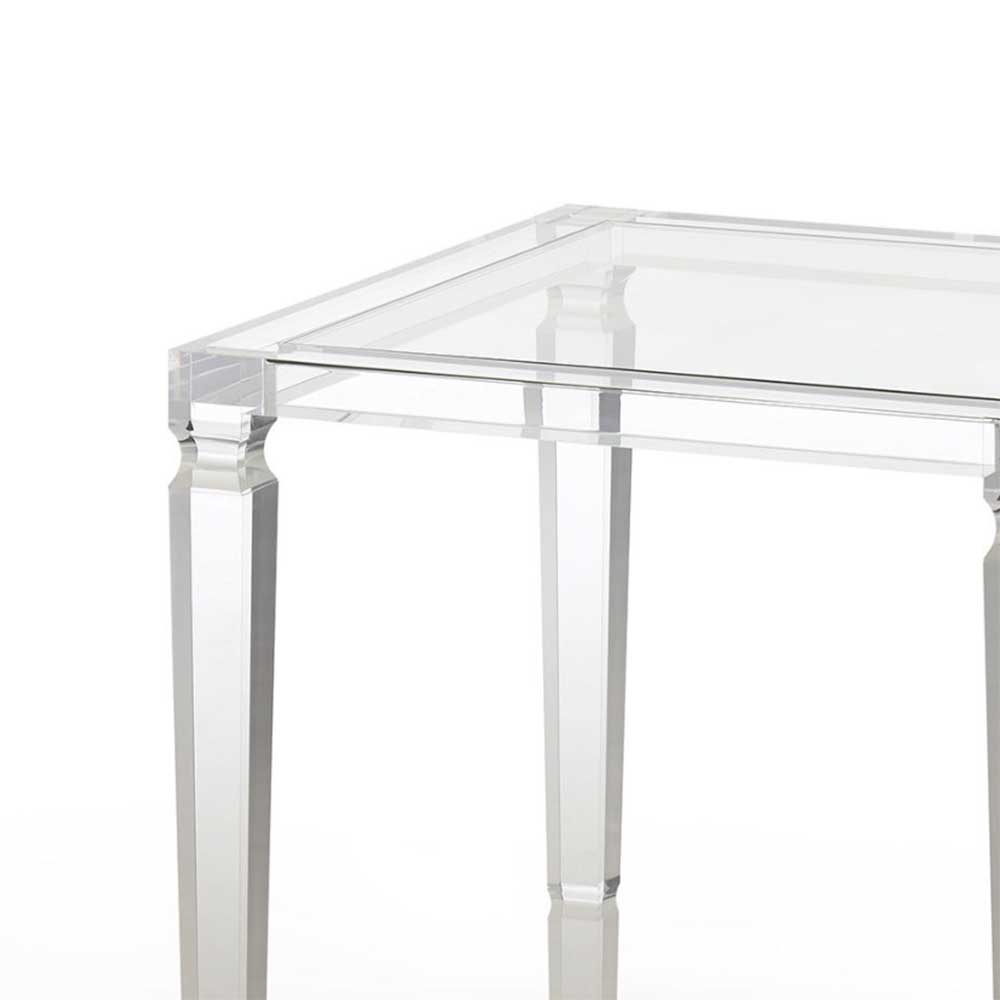 This lamp table features 4 clear legs which is shaped to give it a sophisticated touch. The clear glass top adds a pop of style to this piece which will definitely bring an elegant style to your living room. Pair with the Danielle console table or coffee table to add a stylish flare to your home.