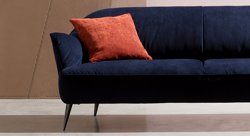The soft flared arms offset the fixed back and the metal angled feet perfectly compliment the design of this beautifully sculptured sofa. It is available in both leather and fabric and with or without a stunning contrast piping that runs around the back and arms of the sofas and chairs. As you would expect it comes in a super range of modular pieces including sofas and chairs and chaise elements.