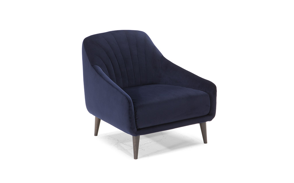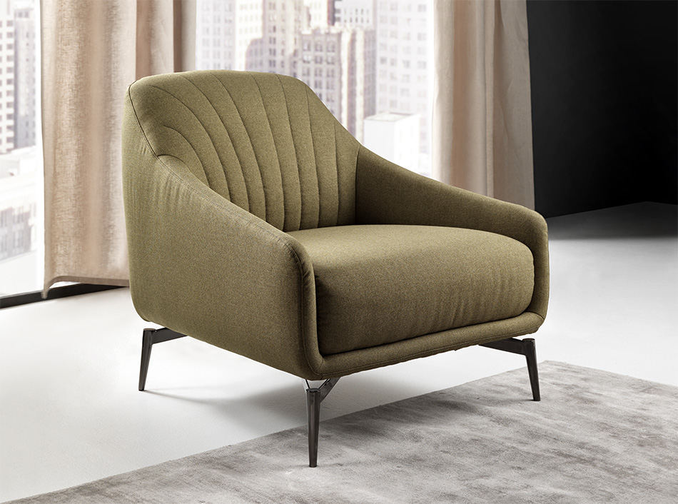 The Natuzzi Felicità armchair features slender, fine wooden legs to support its wide seating space, creating a suspended atmosphere. This chair also includes uniquely crafted finishing that embellishes the wide backrest.