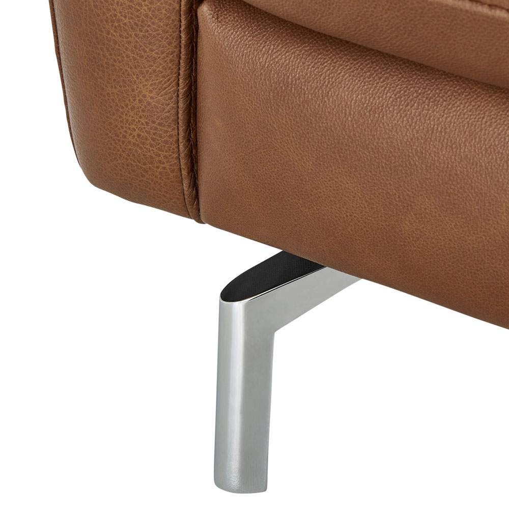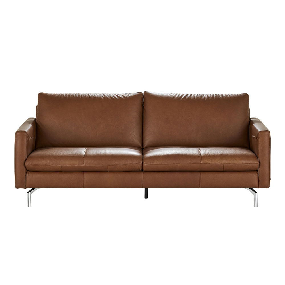 When a couple dreams of living together, Premura is the sofa that they imagine using in the living room. Square-shaped model, with a large seating area for unrivalled comfort. The feet are made of polished chrome-plated metal. Available in leather or fabric, in over 100 colours.